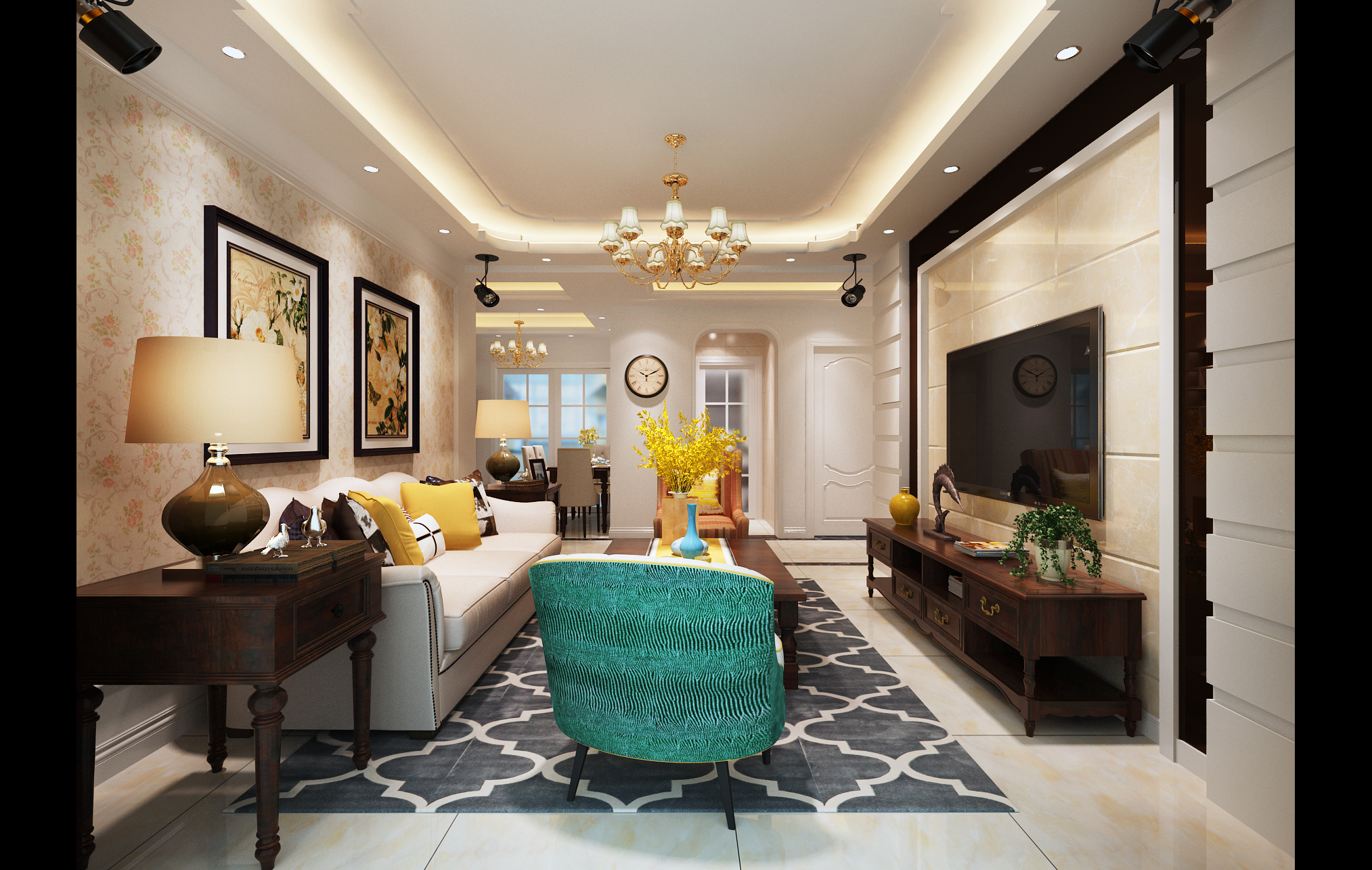 設(shè)計師:龔存保 面積:98平 戶型:三室一廳 風(fēng)格:美式風(fēng)格