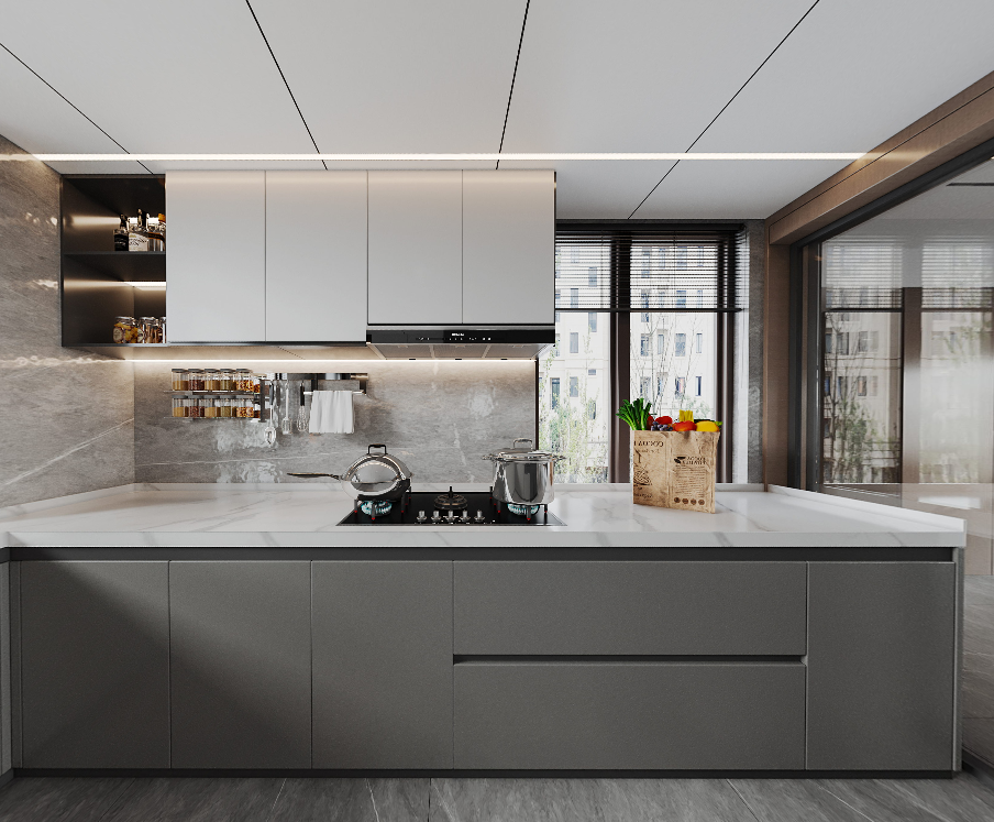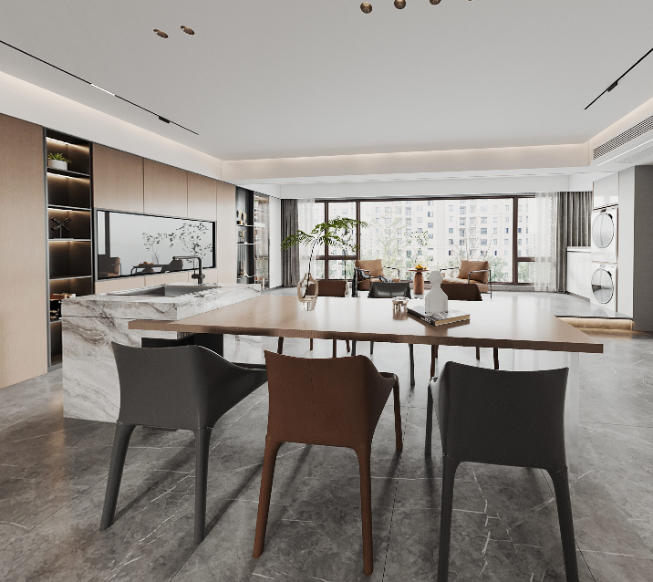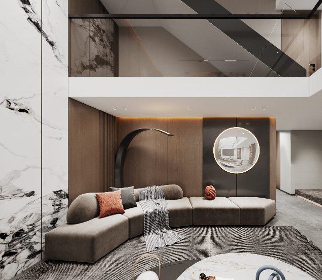 這座底復位于合肥蜀山區(qū),由國徽裝飾設計師龔雪操刀設計,用高級灰配色融合大理石材質,在現代簡約的同時打造出輕奢風格。整體設計中為了統(tǒng)一色調,運用了黑、白、灰三色大理石,設計師選用了大面積的灰色,打造出了現代都市生活下簡練與優(yōu)雅的生活氛圍。